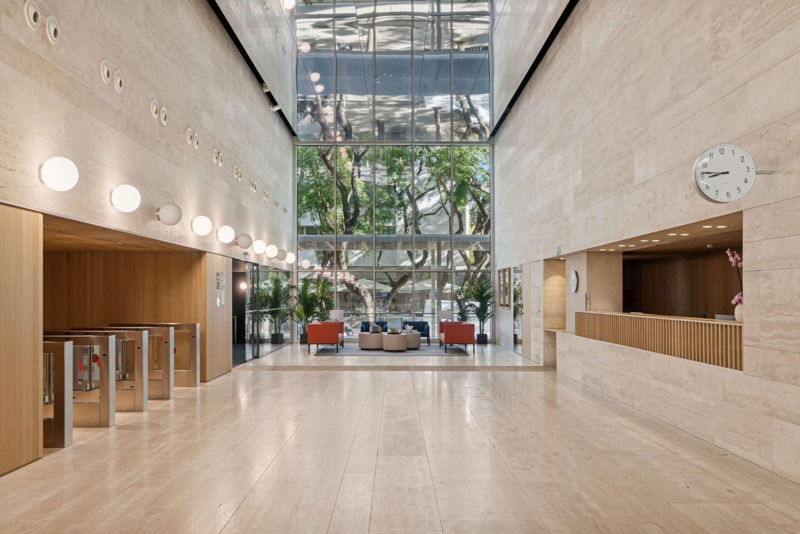 The Diagonal 605 office building is situated on Barcelona’s Avenida Diagonal, with excellent metro, tram, and bus connections. Its 15,700 sqm of surface area include a partially covered interior atrium.